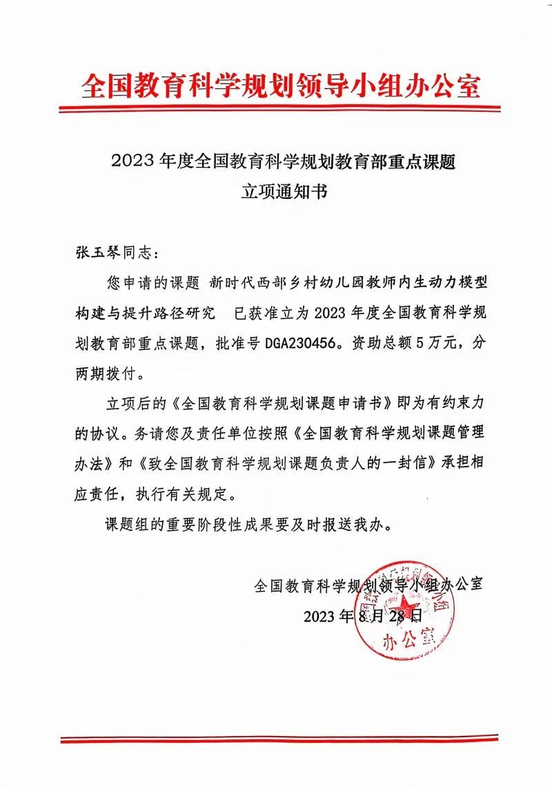 依托教育学和学前教育学两个市级一流学科,学院现有学前儿童心理研究校级重点实验室和早期儿童发展与教育校级科研团队,已发展形成科研实力深厚、研究领域精细和科研成果丰硕的高水平科研平台。近五年,教师主持全国教育科学规划项目4项,教育部人文社科项目1项,省级以上科研项目34项;发表学术论文193篇,其中在SCI、SSCI《新华文摘》《教育研究》《学前教育研究》等发表论文35篇;获省哲学社会科学优秀成果奖等科研奖10项;出版专著20余部;承担陕西省教育厅、各地市教育主管部门、公民办学前教育机构、中国社会福利基金会等委托课题150余项;服务幼儿园100余所,服务学前儿童6万余名。